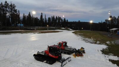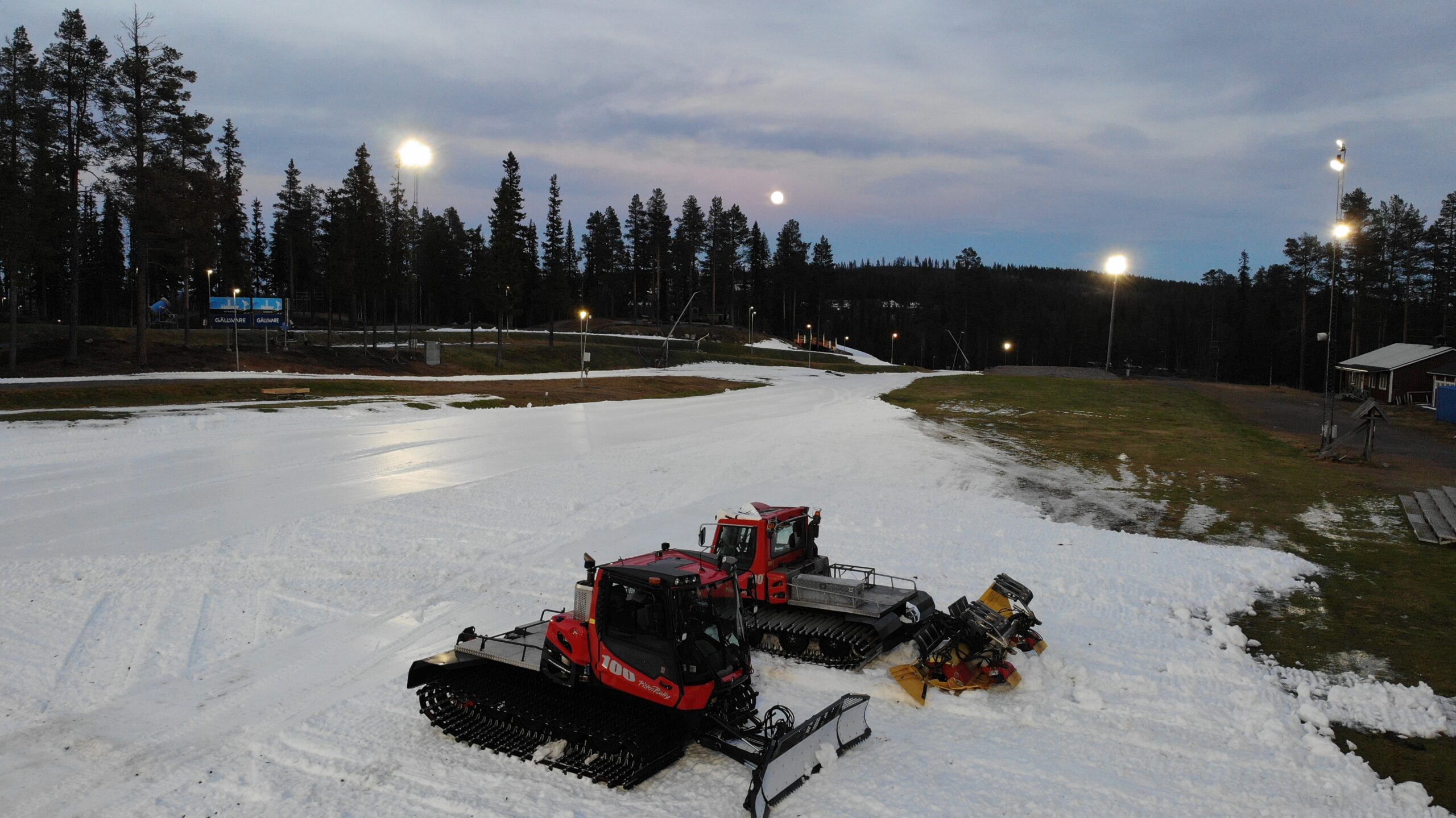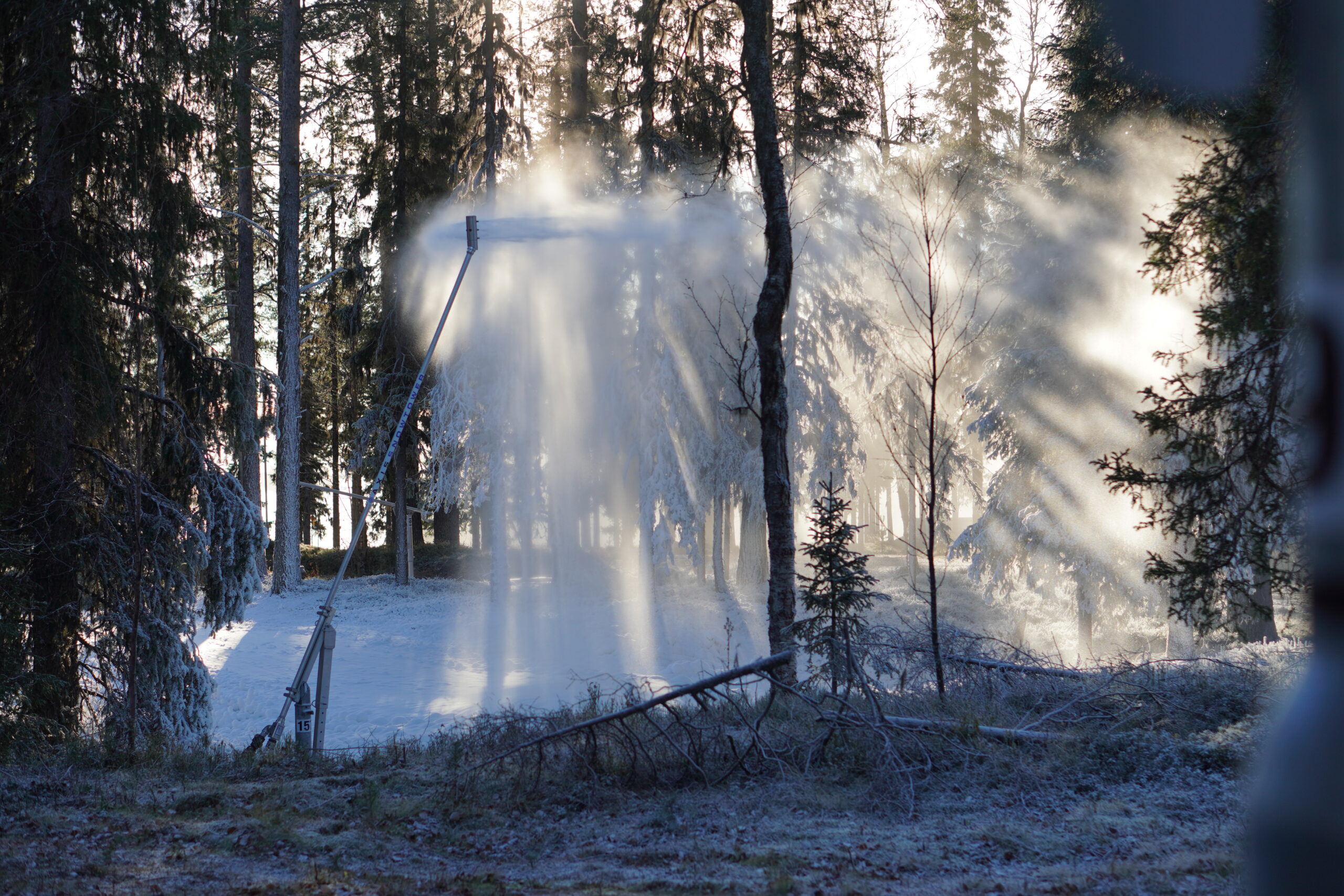 • Vi producerar mer snö så fort temperaturen tillåter det, så utrustning finns längs med spåret. Denna utrustning kan vara idriftsatt, dock ingen fara för skidåkare.